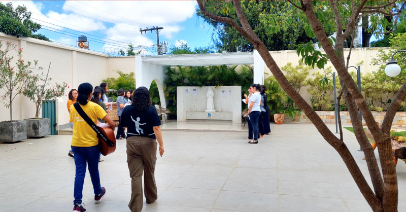Na continuidade da programação, Ir. Rita Cristina trabalhou o tema “Peregrinos, porque chamados”, iluminado por Romanos 5,5: “A esperança não decepciona.” Em clima de caminhada e simbolismo, o grupo seguiu até o espaço Madre Mazzarello, onde recordou a vida de jovens santos e beatos, São Domingos Sávio, Carlo Acutis, Laura Vicuña e Chiara Luce Badano, exemplos de vocações vividas com autenticidade e alegria na amizade com Cristo.
